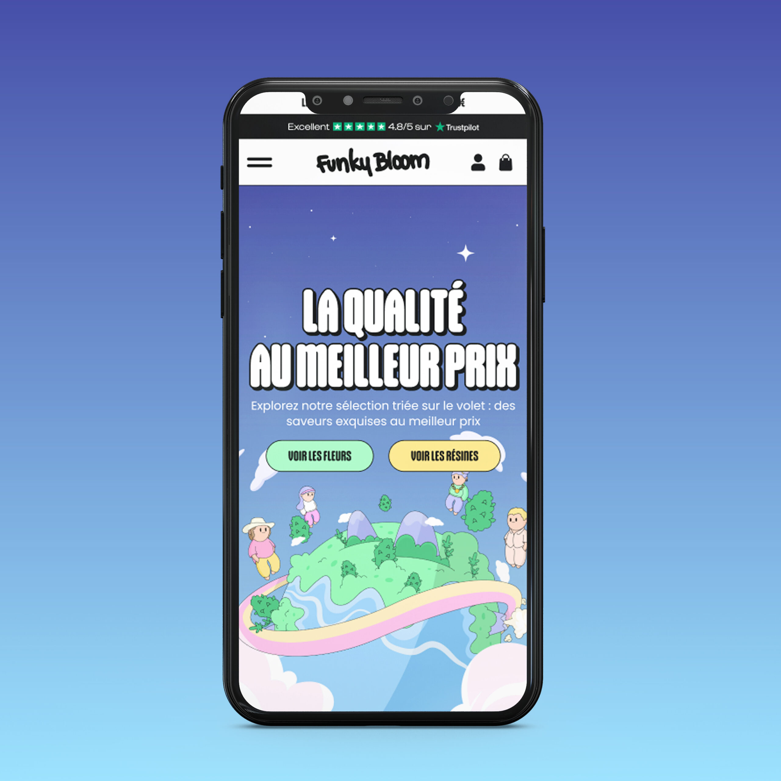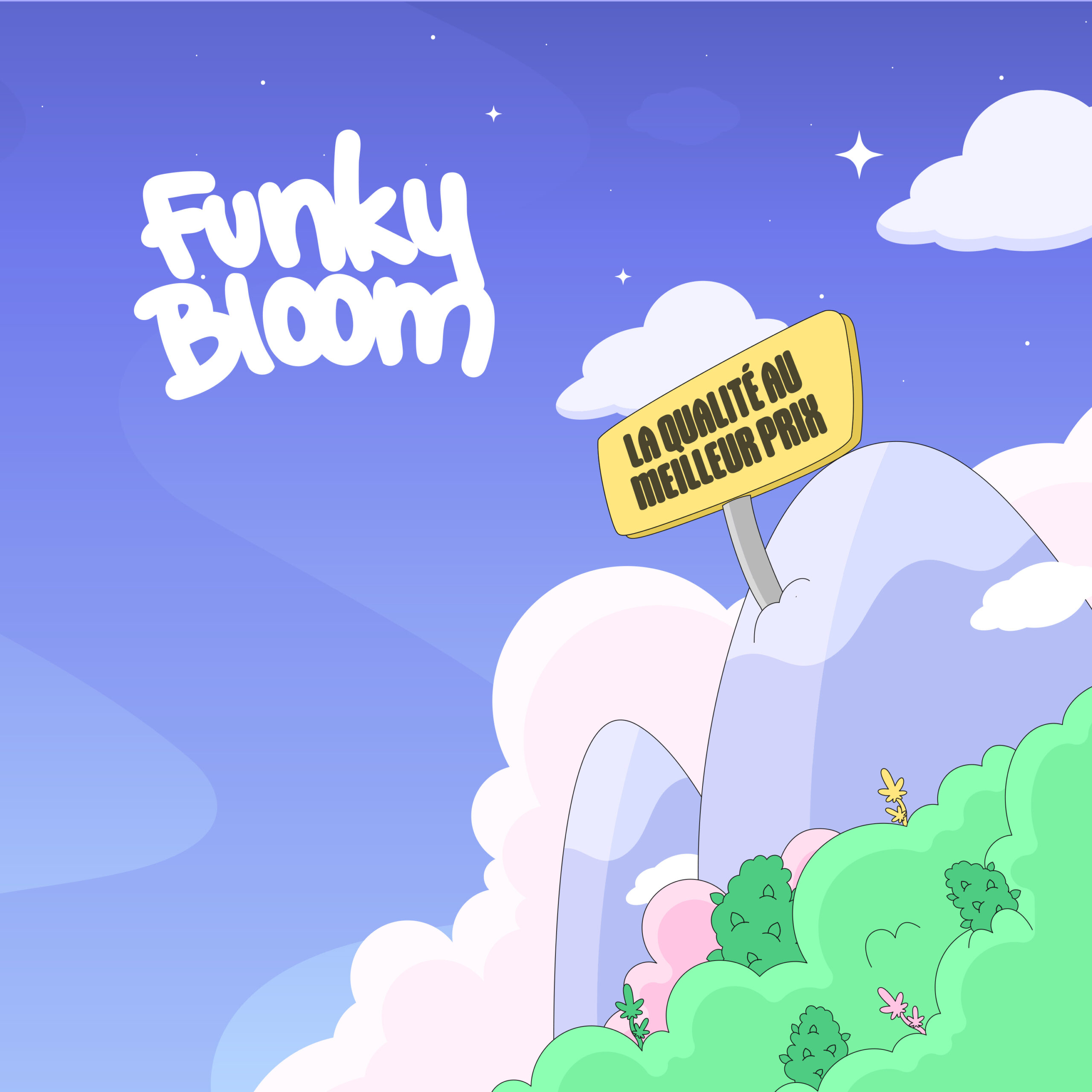 Funky Bloom est une marque haute en couleur pour laquelle un univers cartoon et une identité visuelle forte ont été créés. Logo, illustrations, motifs et site e-commerce ont été conçus pour refléter son esprit fun, pétillant et facilement reconnaissable.