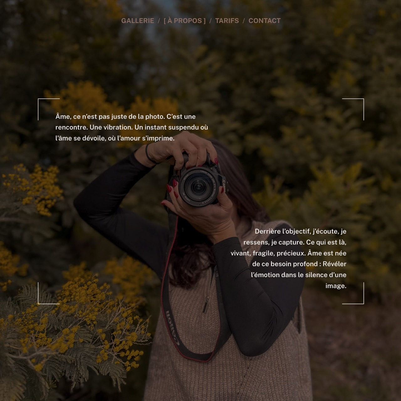 Ce site web a été imaginé comme une parenthèse hors du temps, pour refléter l’univers sensible et poétique de Mathilde, photographe guidée par les émotions, les liens humains et la beauté des instants fugaces. Chaque page a été pensée comme un voyage : une immersion dans son regard, entre lumière du Sud, récits silencieux et souvenirs capturés.